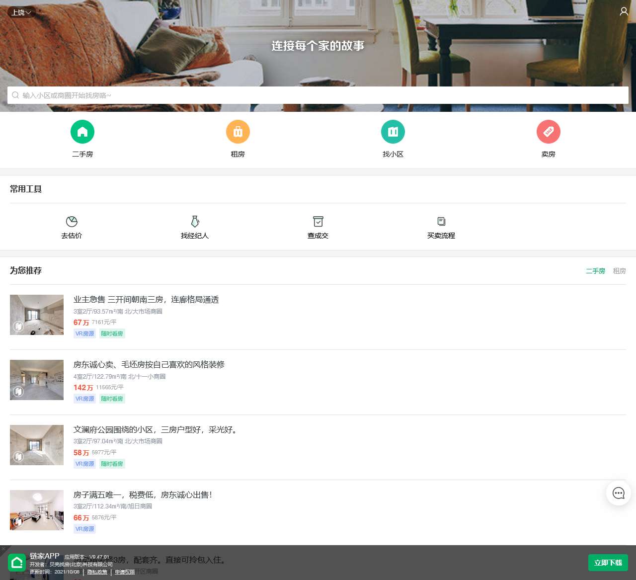 广州链家房产交易平台是您在广州寻找二手房和新房的首选平台。我们提供广州市范围内最全面的房产信息,助您轻松实现自己的房屋梦想。无需浪费时间在无效信息上,下面是我们网站首页提供的相关链接,让您更好地了解和使用我们的平台。