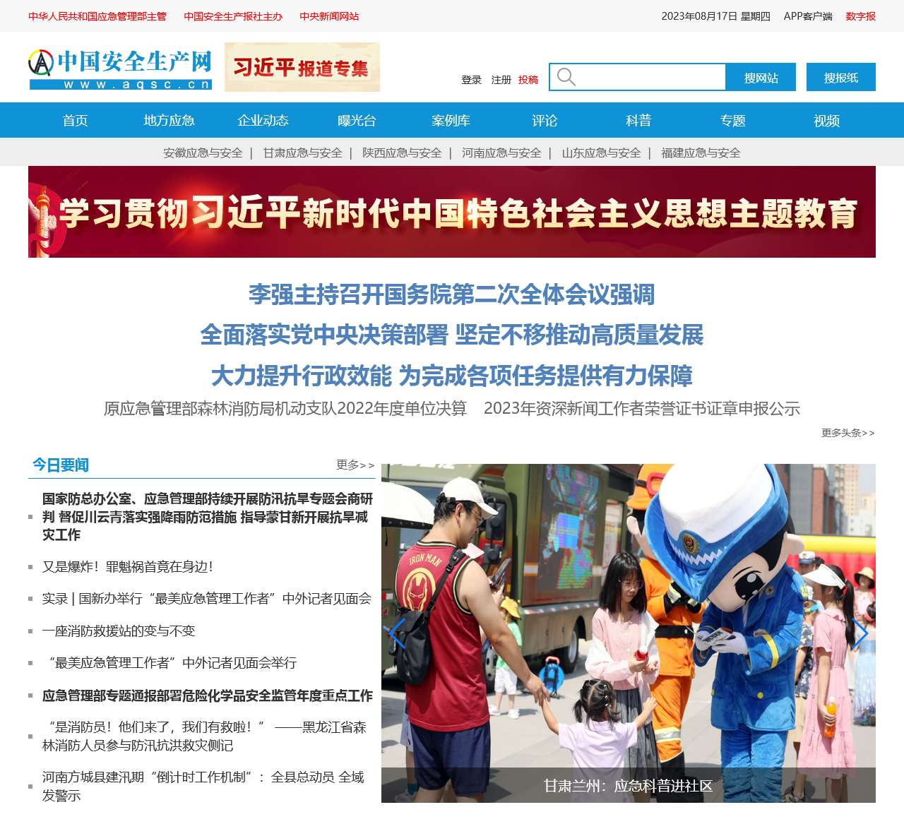 网站首页提供了多种功能和内容,包括地方应急信息、企业动态、曝光台、案例库、评论、科普、专题、视频等。无论您是关心本地应急情况还是对安全管理感兴趣,我们都有丰富的信息资源供您参考。