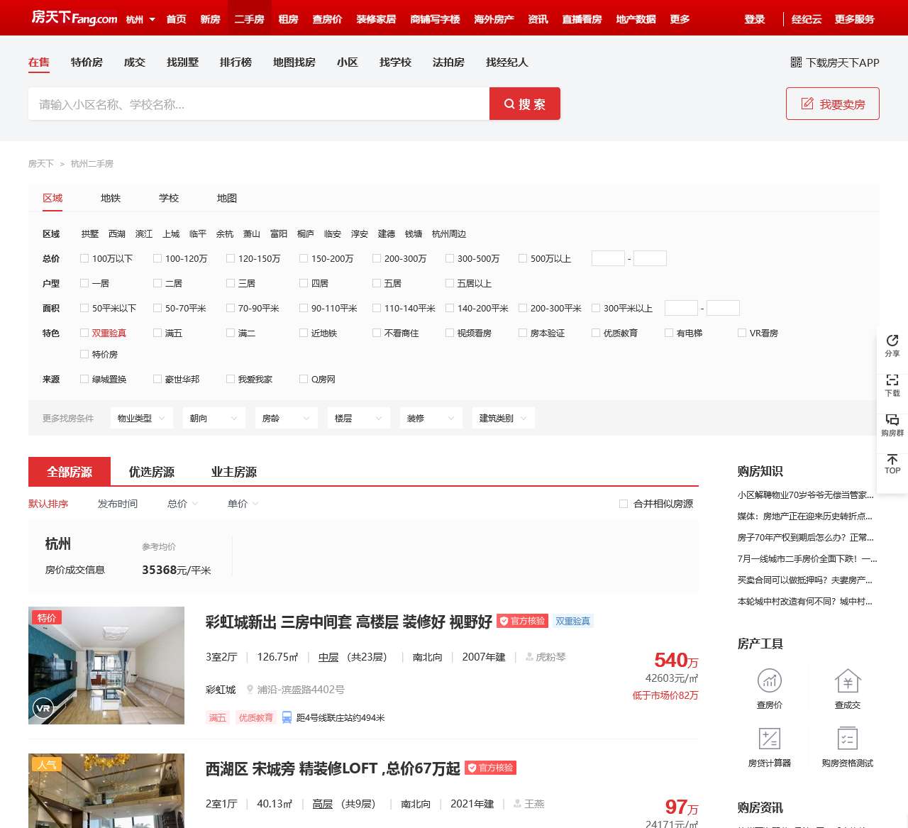 杭州二手房8月参考均价35368元/㎡现有二手房房源151367套,房天下杭州二手房网为您提供快速全面的杭州二手房信息及新发布杭州二手房价格,为您创造舒适二手房购房体验。
