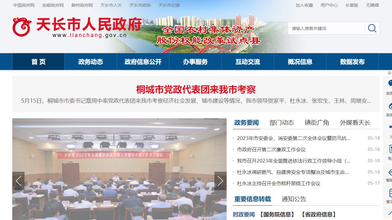 通过首页的链接和新闻展示,用户可以方便地了解天长市政府的工作和政策动态。天长市政府网站致力于提供高效、便捷的政务服务,促进政府与民众之间的互动交流。