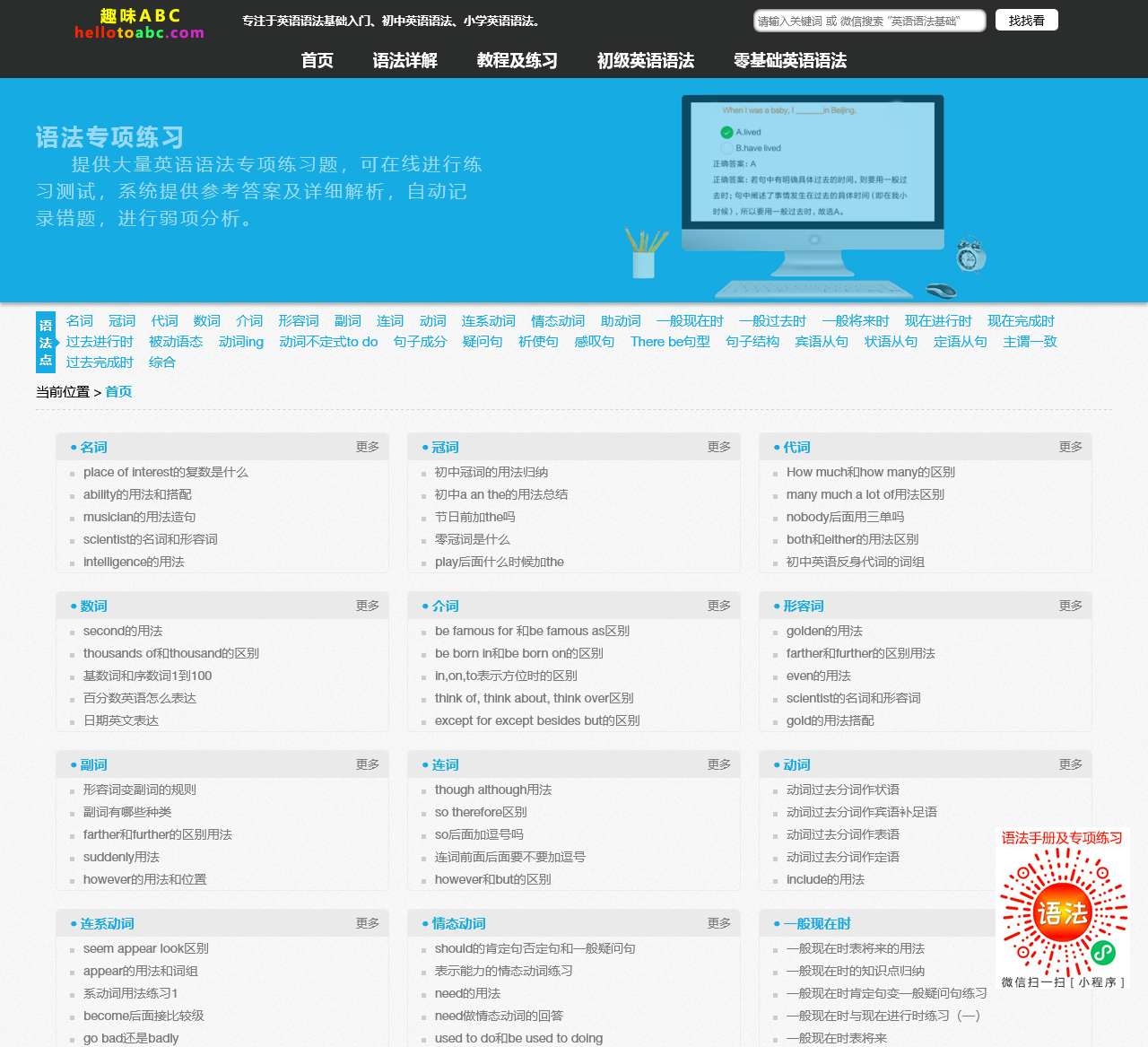 欢迎来到趣味ABC,您的英语语法学习伙伴!在这里,我们为您提供了丰富的英语语法教程和练习资源,无论您是初学者还是零基础,都能找到适合您的学习内容。让我们一起探索英语语法的奥秘,提高您的英语表达能力吧!