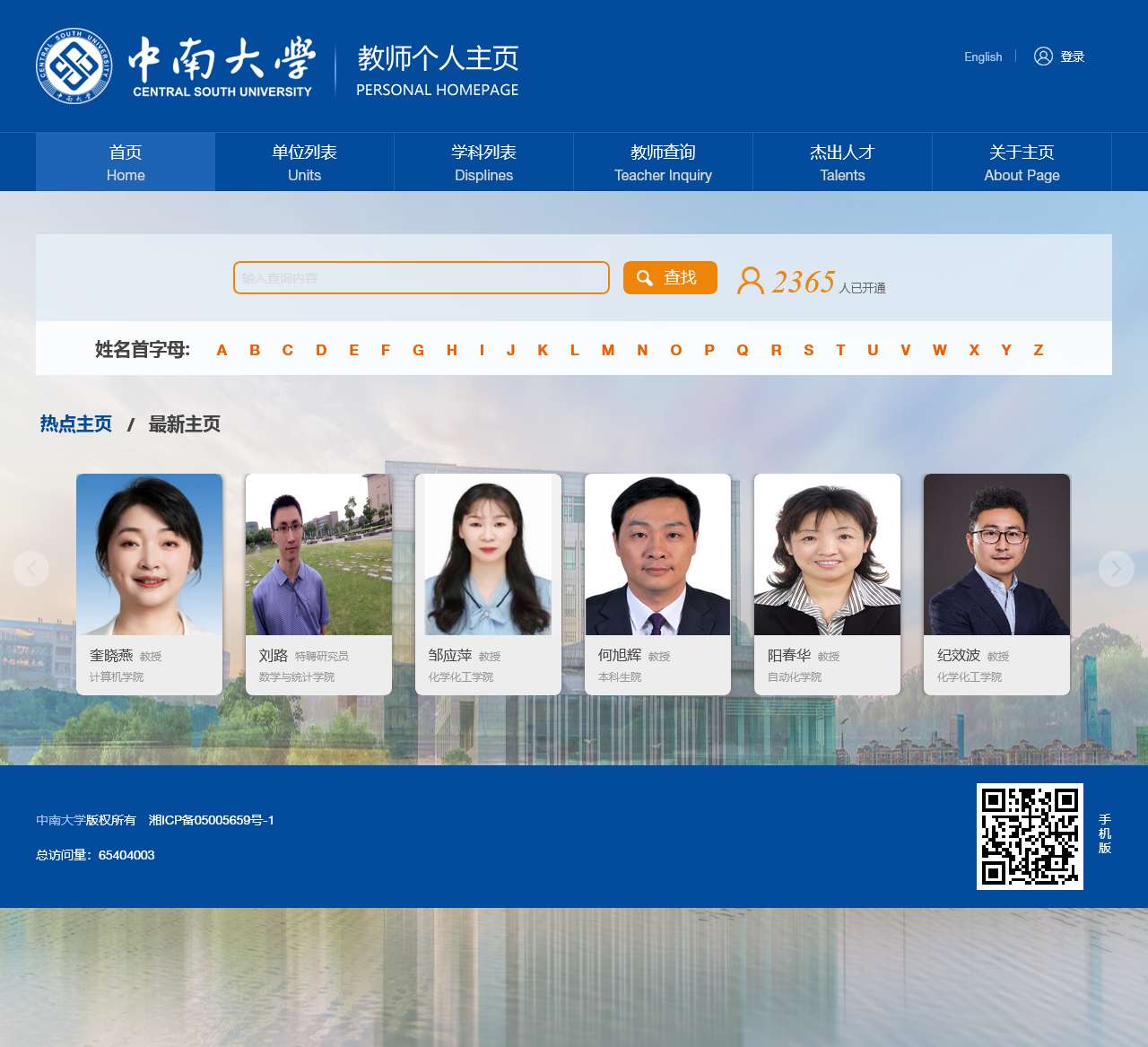 欢迎访问中南大学教师个人主页!本网站旨在为您提供中南大学优秀教师的详细信息,协助您更好地了解我们学校的教育资源。以下是一些重大教师的简要介绍,您可以通过点击他们的名字来访问他们的个人主页以获取更多信息。