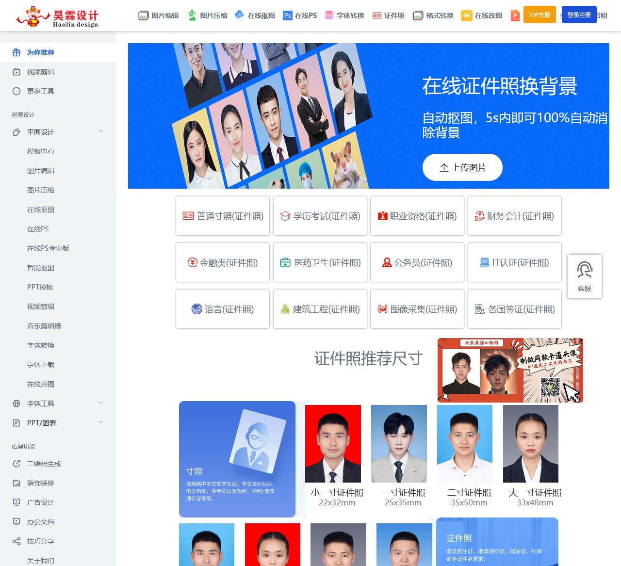 昊霖设计:在线制作1寸2寸证件照,证件照换底色,免费证件照在线换底色