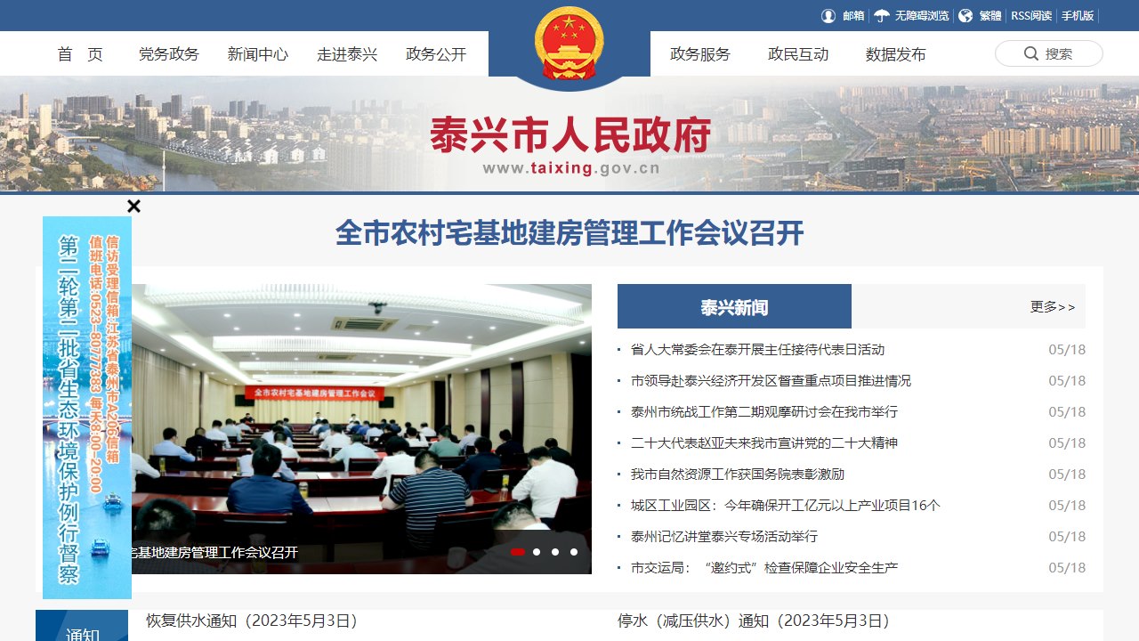 新闻中心:发布最新的政府新闻、重大会议、活动报道等,让市民及时了解泰兴市政府的动态和政策。