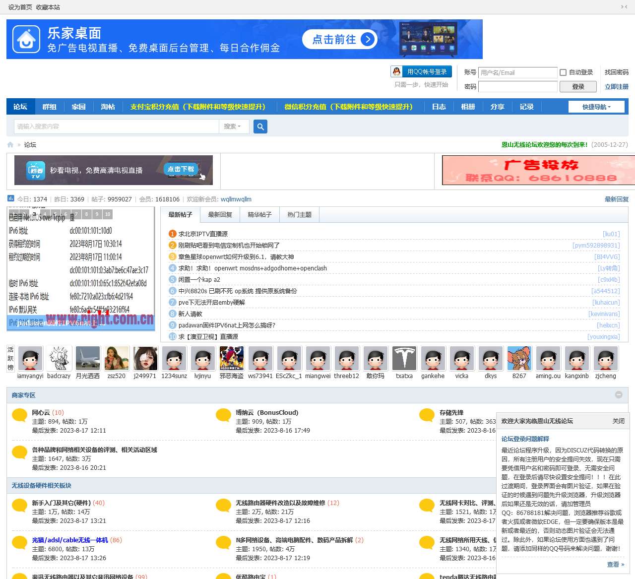 恩山无线论坛欢迎您的每次到来!在这里,您可以找到各种有关无线网络和技术的信息、交流和资源。无论您是一个网络爱好者、技术专家还是刚刚入门的新手,我们都欢迎您的加入。以下是一些关键功能和链接,协助您更好地使用本论坛: