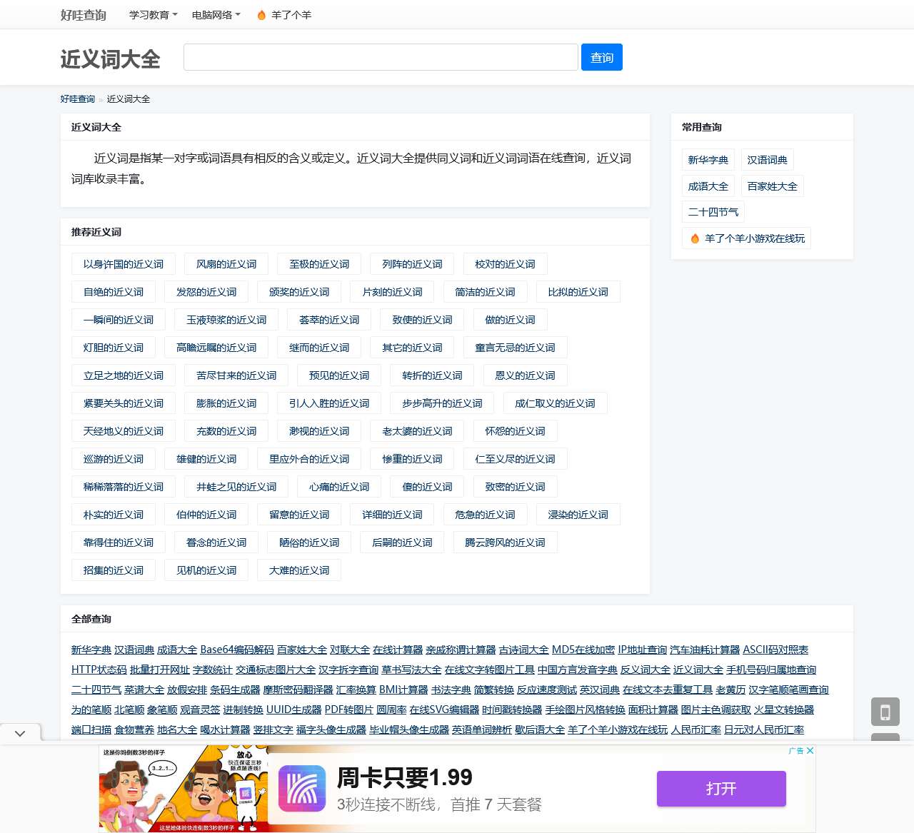 关于近义词大全 – 在线同义词、近义词词语查询特别声明