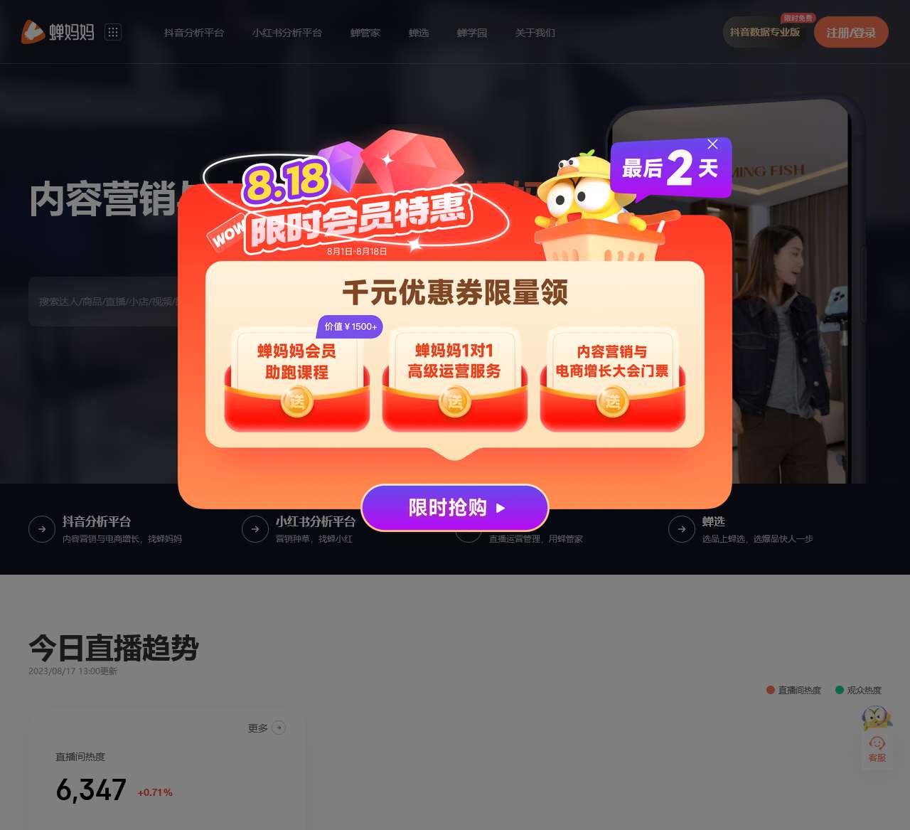 欢迎来到蝉妈妈数据,您的抖音&短视频电商数字决策平台!