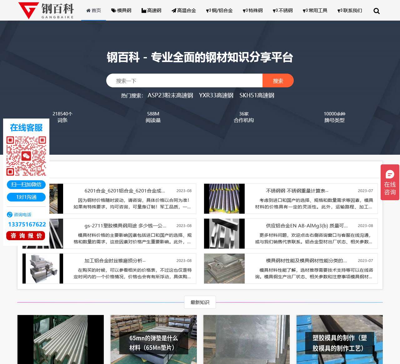 钢百科是一个专注于高端钢铁行业百科知识分享的平台,主要包含模具钢,钨钢,铜合金,铝合金,高温合金,镍基合金等相关材料。找钢铁知识,上钢百科。