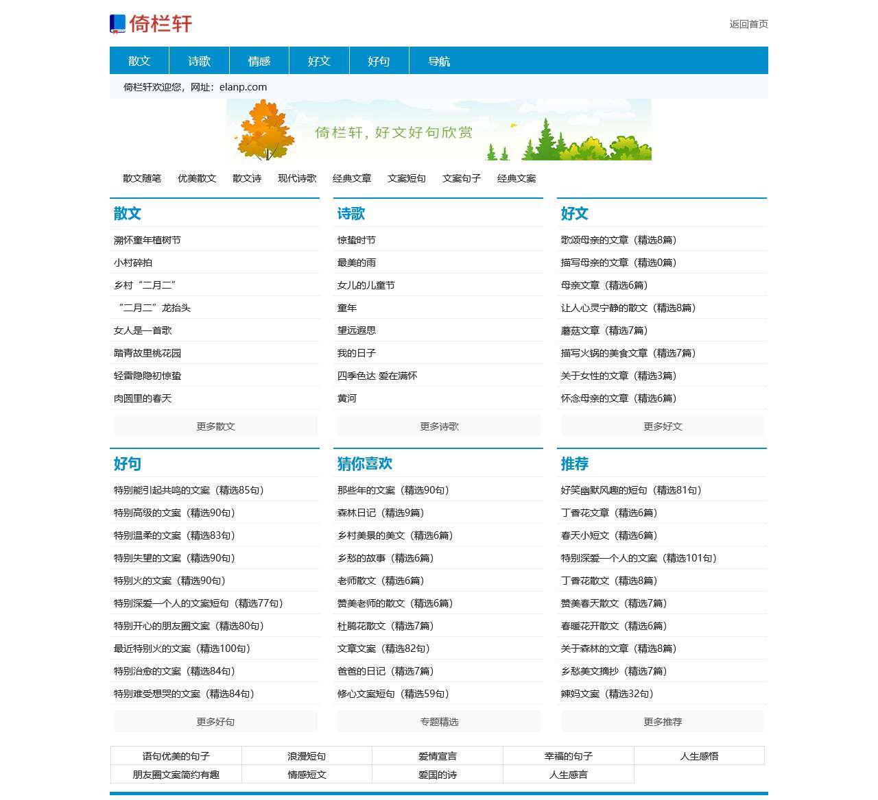 倚栏轩提供经典短句、好句子、好文章在线阅读。包括但不限于伤感、优美短句,好句子大全,好文章摘抄等栏目内容。