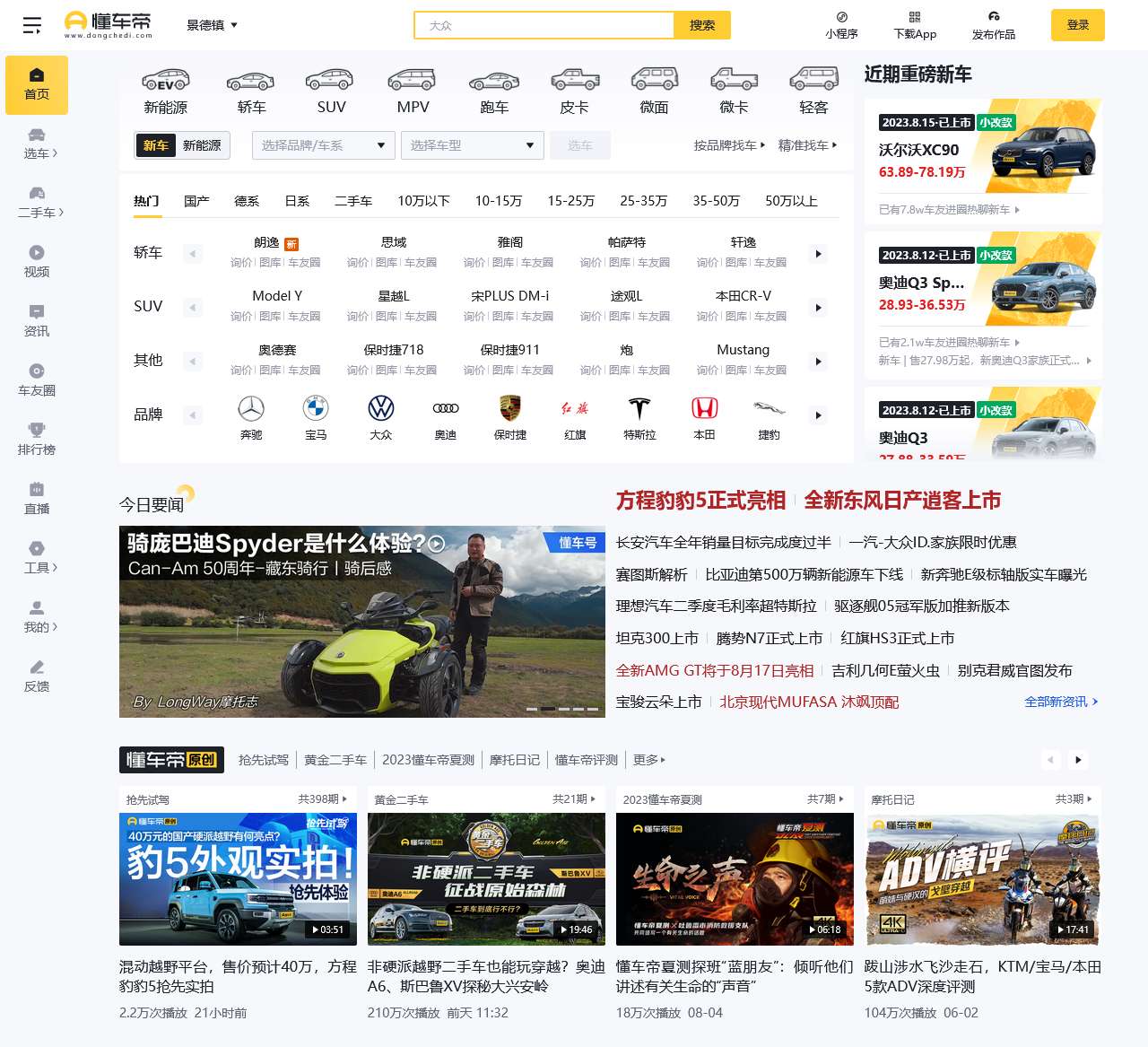 你好,欢迎来到懂车帝,这里是您了解汽车世界的绝佳门户。懂车帝是一家专注于汽车信息的网站,为您提供广泛的汽车选择,从新能源到豪华轿车,再到实用的SUV和皮卡,我们都有详细的信息和最新的价格。无论您是寻找新车还是二手车,懂车帝都能协助您做出明智的决策。