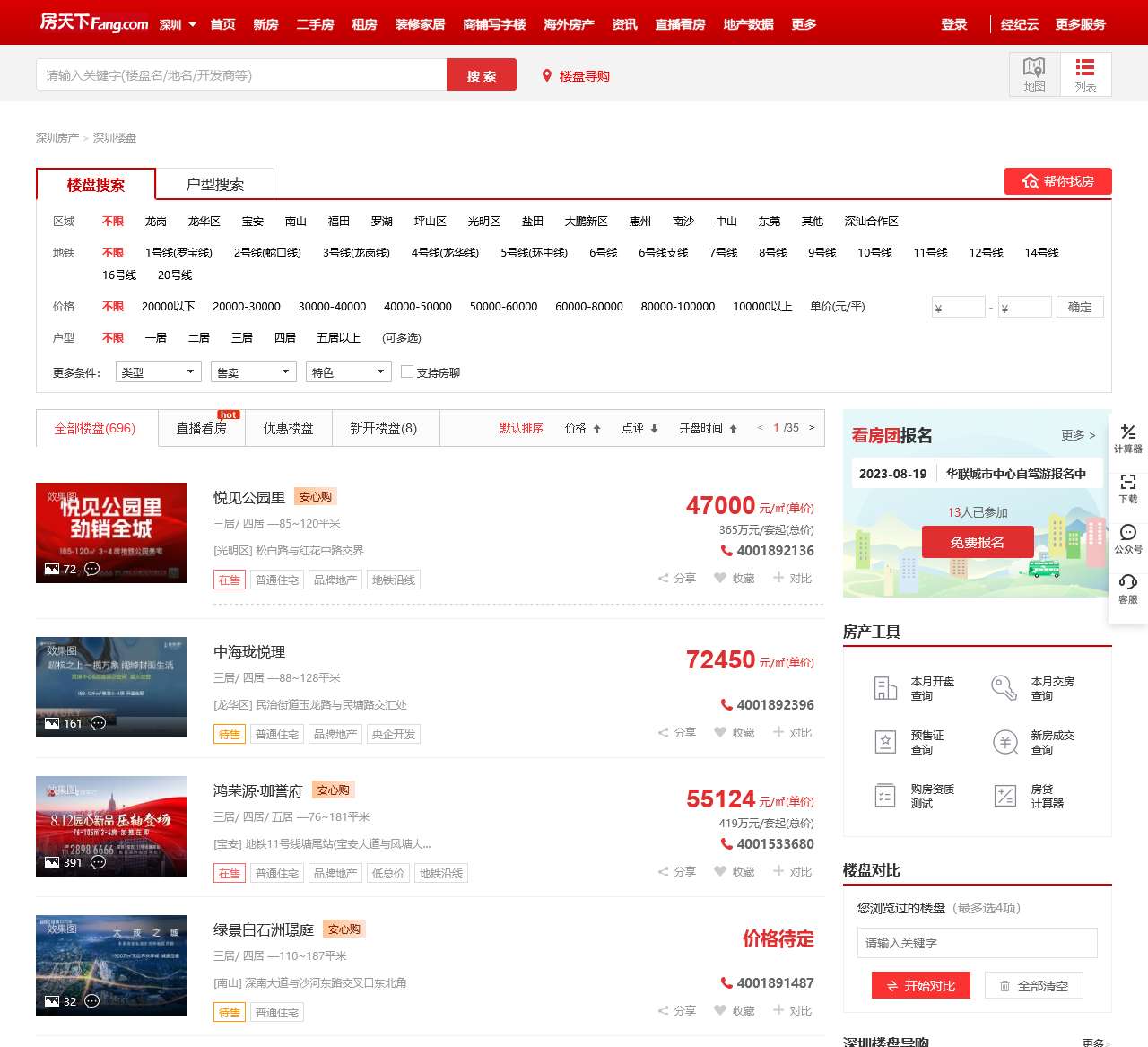 欢迎来到深圳房天下,您的最佳深圳楼盘信息平台。我们覆盖了深圳及全国范围内的楼盘信息,包括全国各大城市如北京、上海、广州、成都、重庆等地的最新楼盘动态,为您提供全面、及时的房产资讯。以下是我们网站首页的内容的整理,协助您更好地了解深圳楼盘和新房情况。