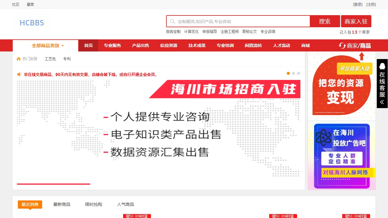 海川网工业人服务交易平台,化工人商城HCBBS工业技术服务购买平台,为广大工业人提供一个服务购买,闲置交易,知识产品的交易共享平台