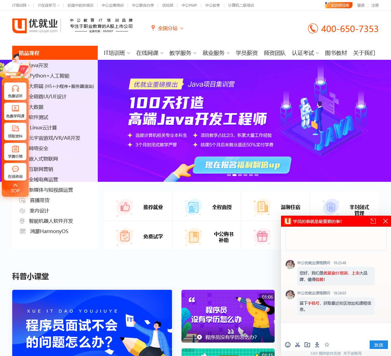 中公教育,专注于职业教育的A股上市公司,提供广泛的IT培训班和课程,旨在协助大学生获得先进的IT技术培训。无论您是初学者还是想提升职场竞争力,中公教育都有适合您的IT培训项目。