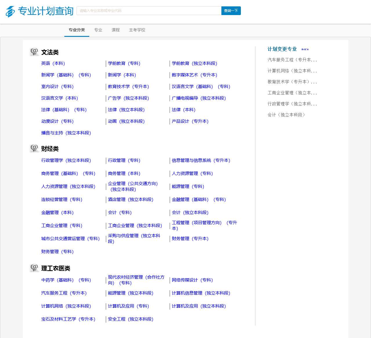 关于专业计划查询特别声明