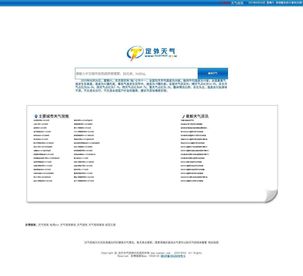 | 北京 | 2023-8-26 | 阴 | 33℃ | |