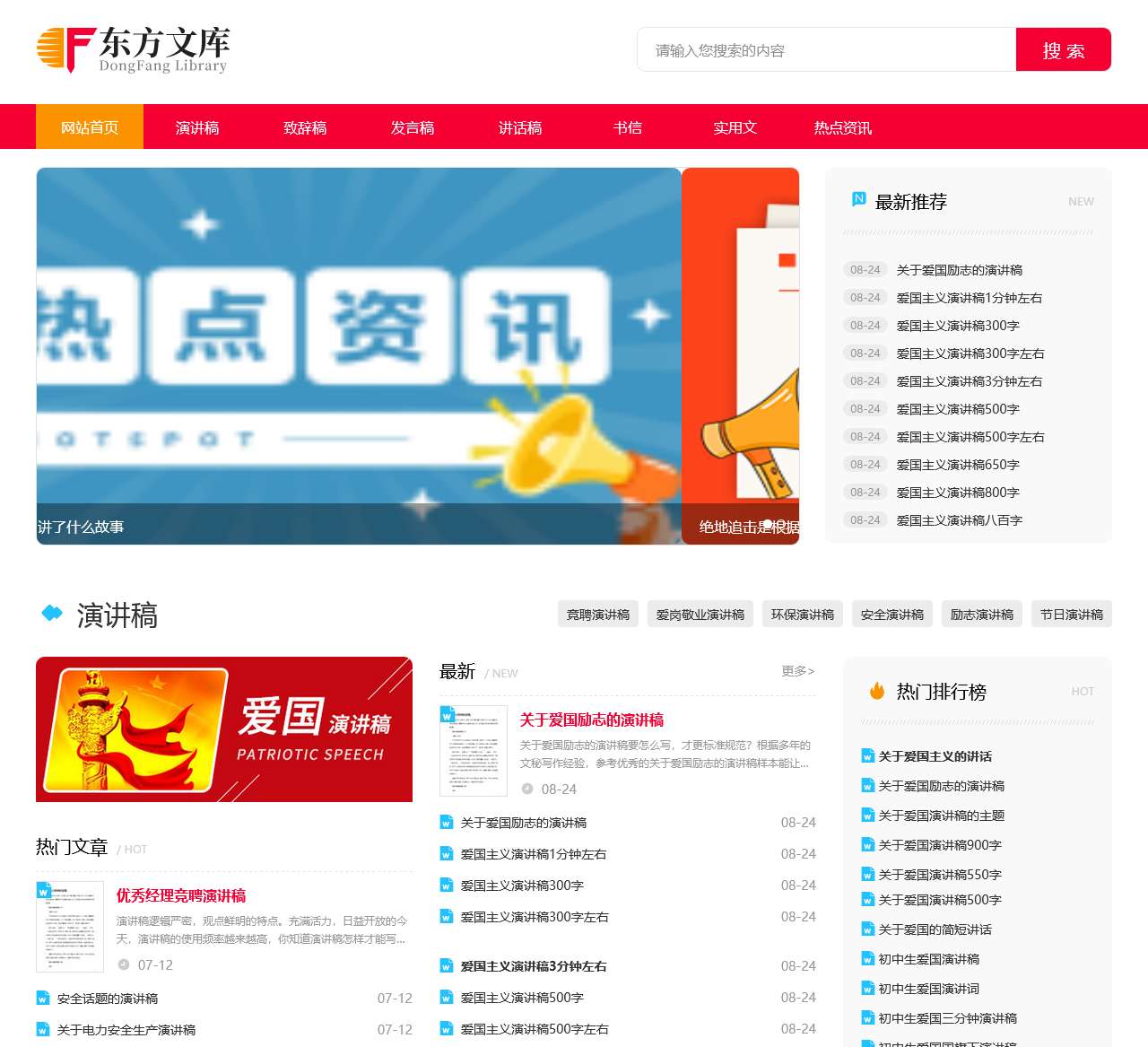 东方文库网站提供海量的演讲致辞范文资料,包括有励志演讲稿、英语演讲稿、读书演讲稿、感恩演讲稿等经典演讲稿范文,另有领导干部发言稿、致辞稿范文及模板等海量的范本帮助你更好地完成讲话稿件的书写!