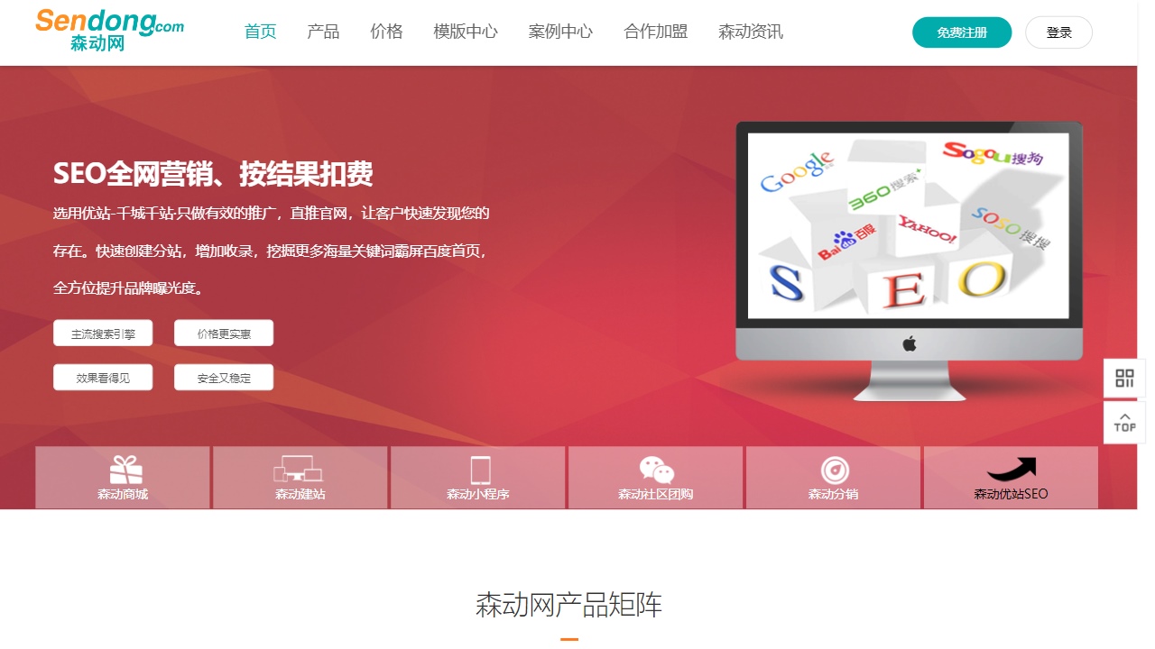 除了以上产品和服务,森动网还提供了模版中心和案例中心,用户可以选择适合自己网站风格的模版,并参考案例中心中的成功案例。另外,森动网也欢迎合作加盟,提供更多的商业合作机会。