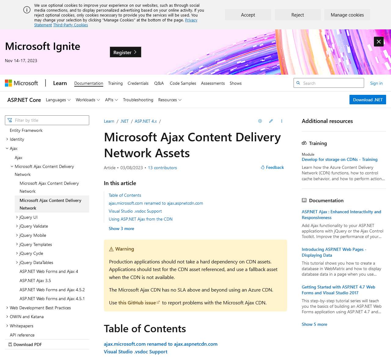 The Microsoft Ajax Content Delivery Network (CDN) hosts popular third party JavaScript libraries such as jQuery and enables you to easily add them to your Web applications.
