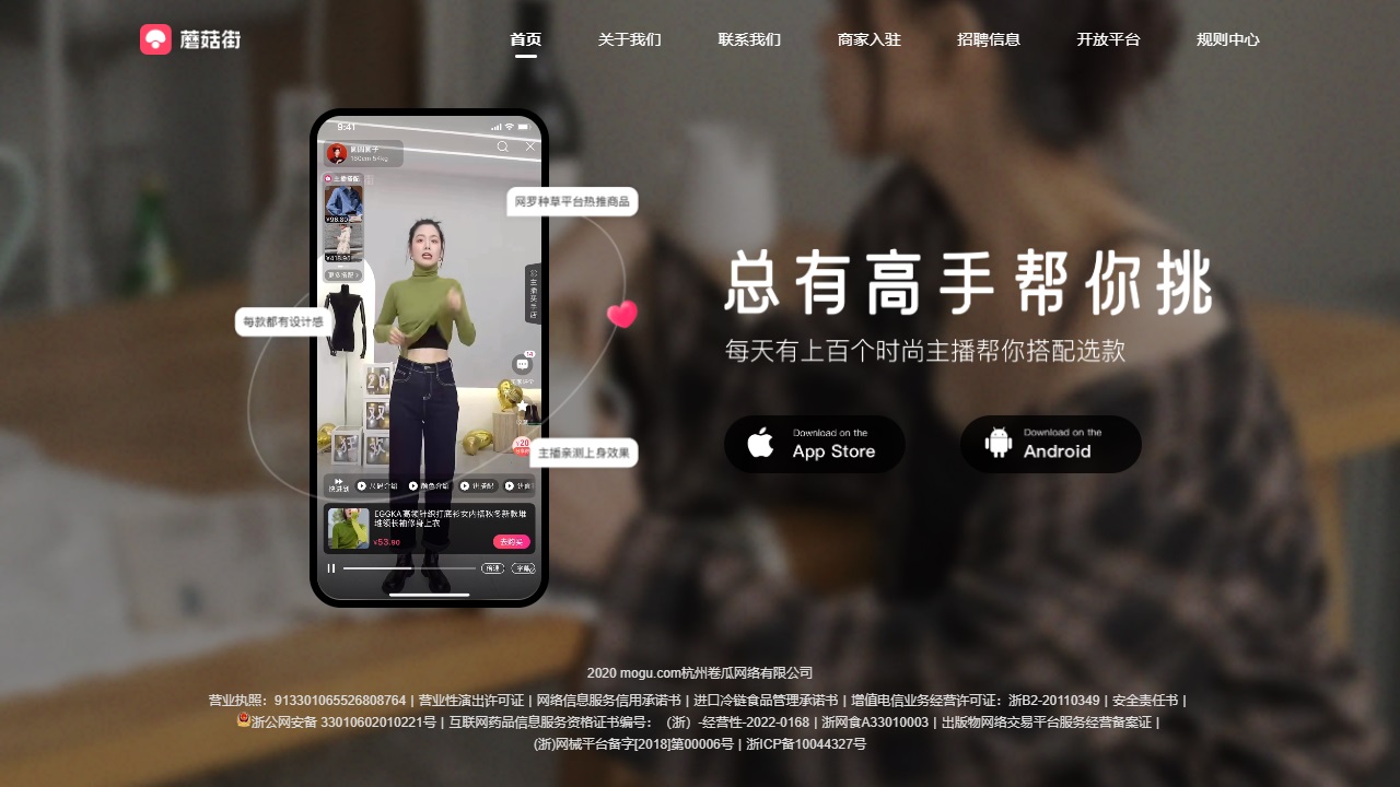 蘑菇街是一家致力于提供优质时尚商品和服务的网站。我们为用户提供丰富多样的购物体验,同时为商家提供一个便捷的平台来展示和销售他们的产品。以下是我们网站首页的一些重大链接和资质信息: