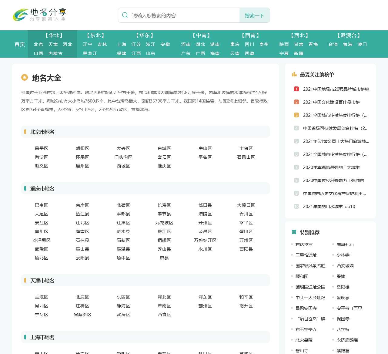 地名网、行政区划,政区介绍,各省份资料,行政区域划分与乡镇介绍网站大全