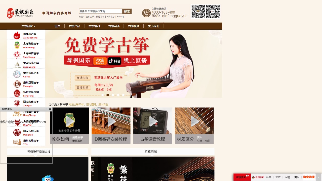 除了古筝销售,琴枫雅轩还提供古筝培训和知识分享。网站上有关于古筝的视频、曲谱、结构、安装试调和保养等内容,协助你更好地了解和学习古筝。