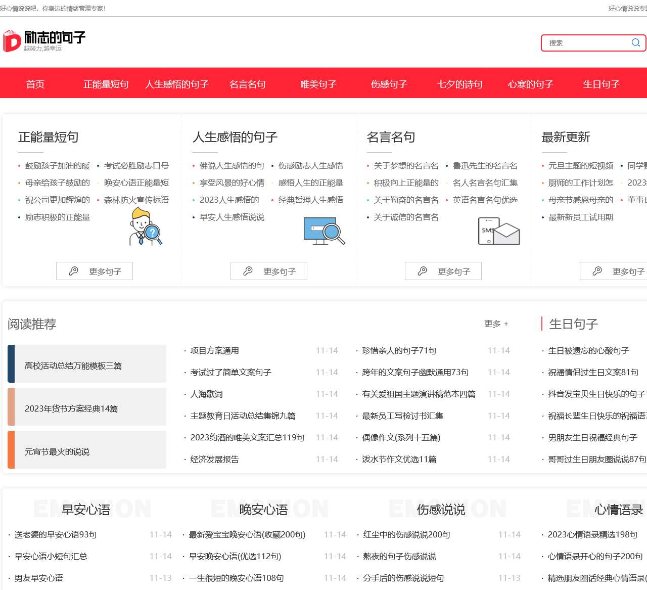 励志的句子网是一家努力打造原创励志的句子经典语句的网站。大量优秀的文创编辑尽最大努力原创您所需要的超励志的正能量句子。我们提供开启新征程的励志句子、坚持励志正能量的句...