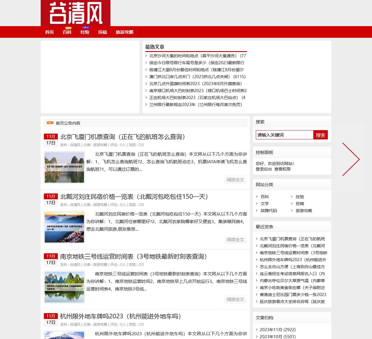 谷清风是一家专注于提供全面旅游攻略的网站,致力于为广大旅行者提供详实的旅游信息和实用的旅行提议。我们的网站涵盖了各种热门旅游目的地,包括北京、保定、杭州、南京、香港等地,以及一系列实用的百科、经验和投稿板块,为您的旅行计划提供全方位的支持。