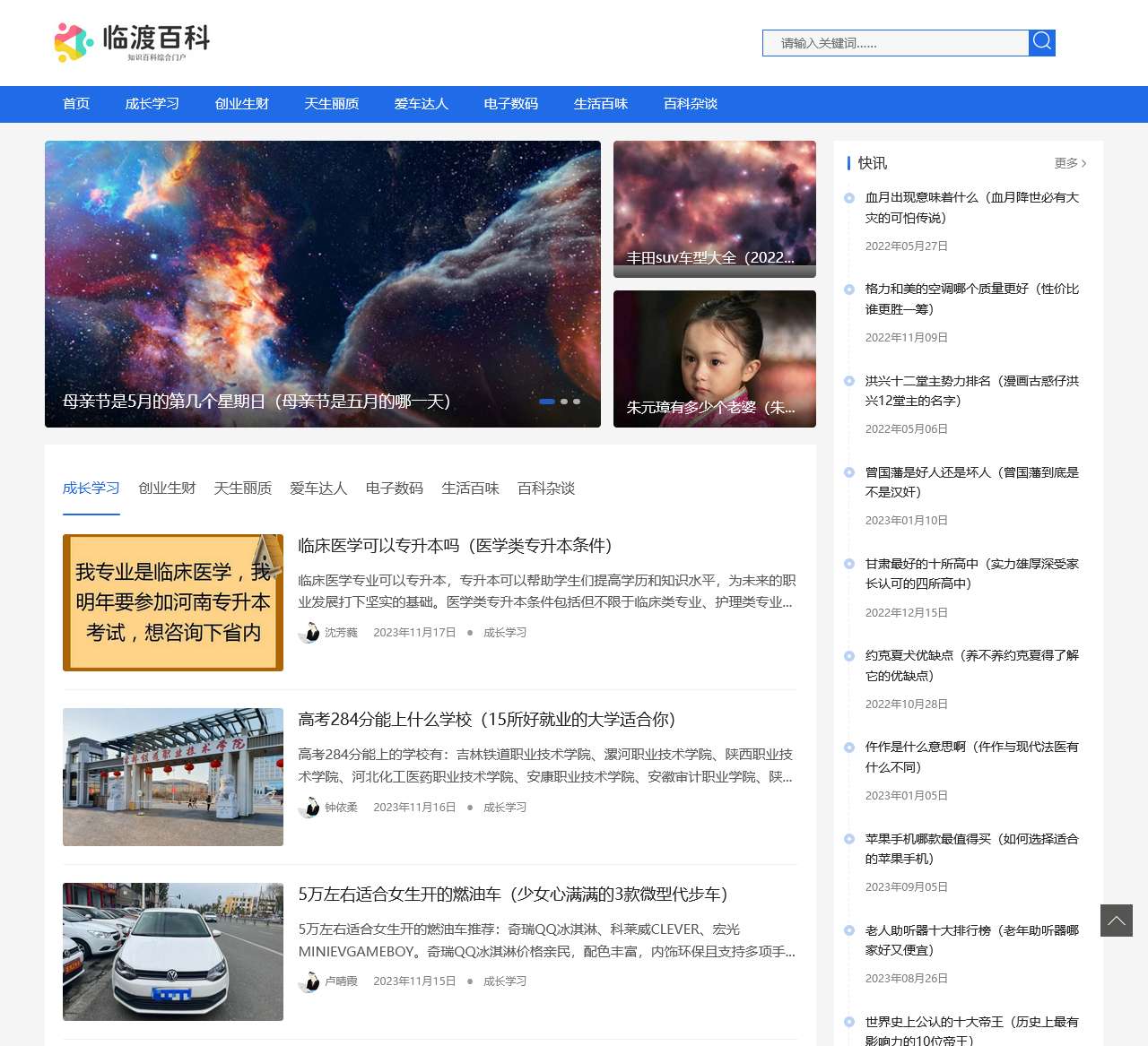 欢迎来到临渡百科,您的知识百科综合门户!在这里,我们为您提供丰富多彩的内容,涵盖成长学习、创业生财、天生丽质、爱车达人、电子数码、生活百味等各个方面。通过我们精心整理的信息,协助您更好地了解世界,探索知识的海洋。