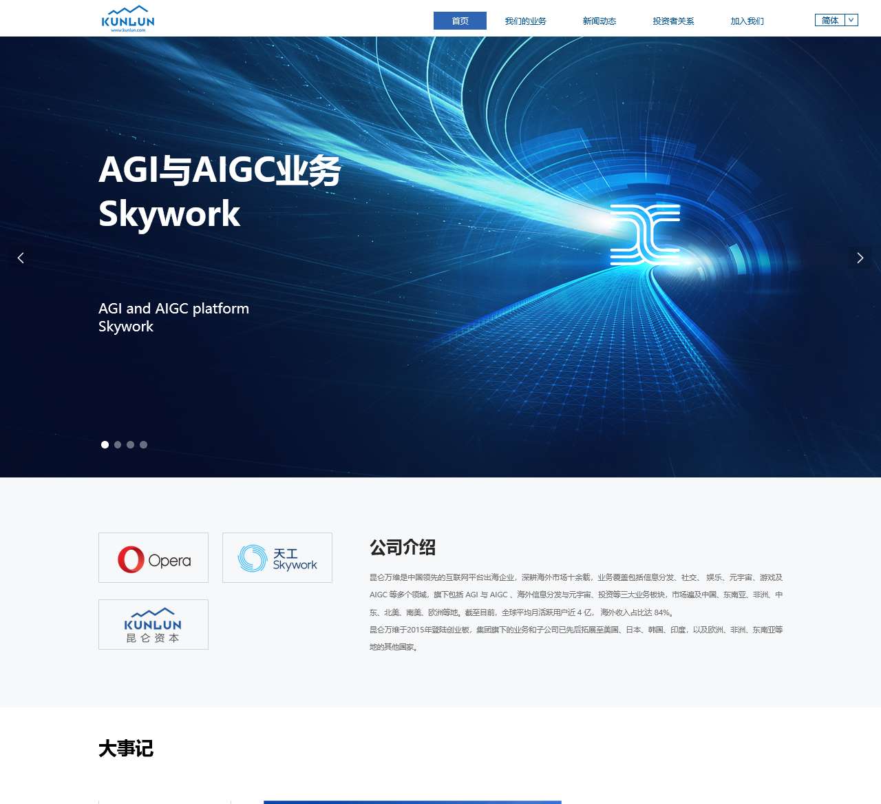 作为一家全球领先的互联网平台型公司,昆仑万维逐渐在全球范围内形成了语音社交平台StarX、社交信息分发平台Opera、UGC游戏平台Ark Games、竞技娱乐平台闲徕互娱、投资板块等五大业务,市场遍及中国、东南亚、非洲、中东、北美、南美、欧洲等地,为全球互联网用户提供社交、资讯、娱乐等信息化服务。截至2021年6月末,昆仑万维整体月活跃用户近4.5亿,其中九成以上用户来自于海外。昆仑万维于2015年登陆创业板,全球员工数已增至4000多人,集团旗下的业务和子公司已先后拓展至美国、俄罗斯、日本、韩国、印度