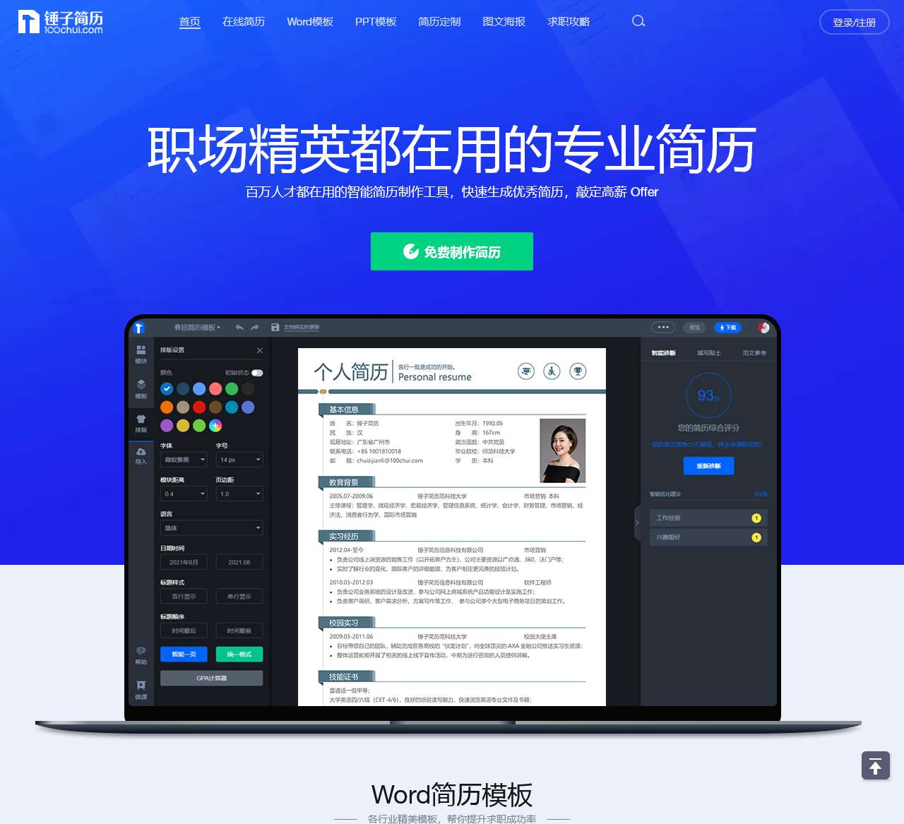 锤子简历 – 专业简历模板设计,在线生成简历神器