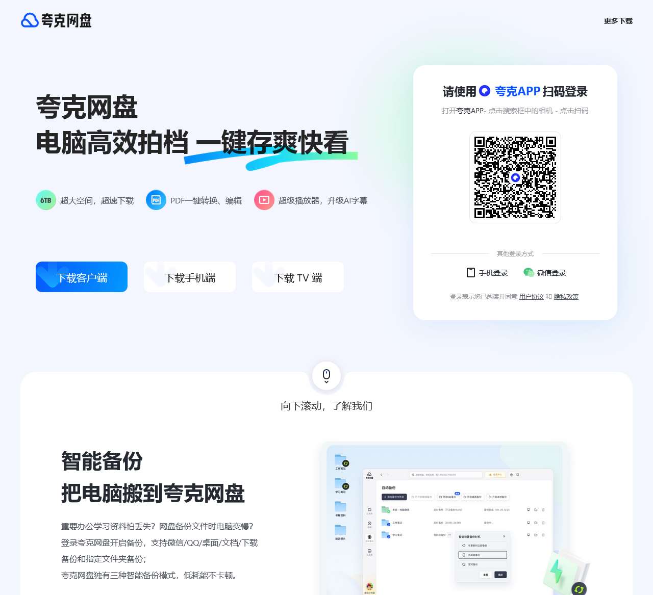 夸克网盘是夸克推出的一款云服务产品,功能包括云存储、高清看剧、文件在线解压、PDF一键转换等。通过夸克网盘可随时随地管理和使用照片、文档、手机资料,目前支持Android、iOS、PC、iPad。