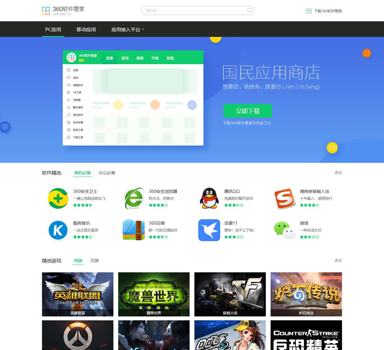 360软件管家是360安全卫士提供的一款集下载、安装、升级、卸载、购买软件的管理工具;软件库中收录万款正版软件,均经过360安全中心白名单检测,不仅提供用户高速下载、去插件安装、一键卸载恶意软件等特色功能,而且提供用户软件购买、游戏直充、VIP会员购买、游戏周边、游戏设备、资讯热点、视频直播等新型功能,为用户带来安全、快捷的软件周边体验。