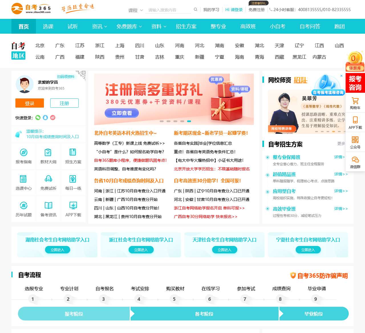 自考365,自考网站,自考培训机构,连续多年获得全国十佳网络教育机构称号,常年提供自考专业辅导和自考本科辅导,开设有自考辅导班,专家授课,提供24小时在线答疑。此外还免费为广大高自考学员提供自考报名,成绩查询,自考试题,考试时间等信息;并开设有自考论坛互动社区;服务热线:010-82335555。