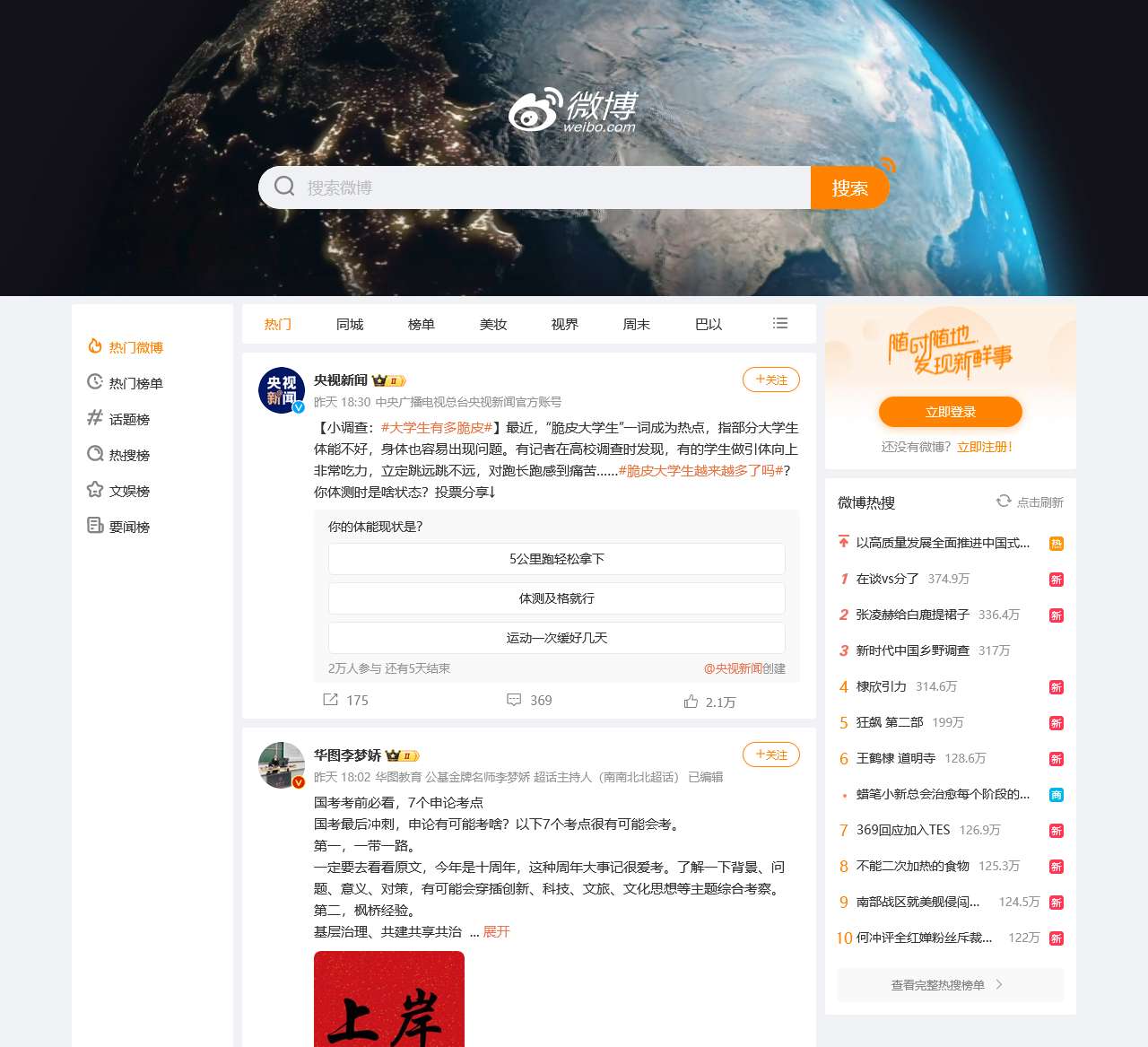 - 热门微博: 浏览最受欢迎和热门的微博内容。