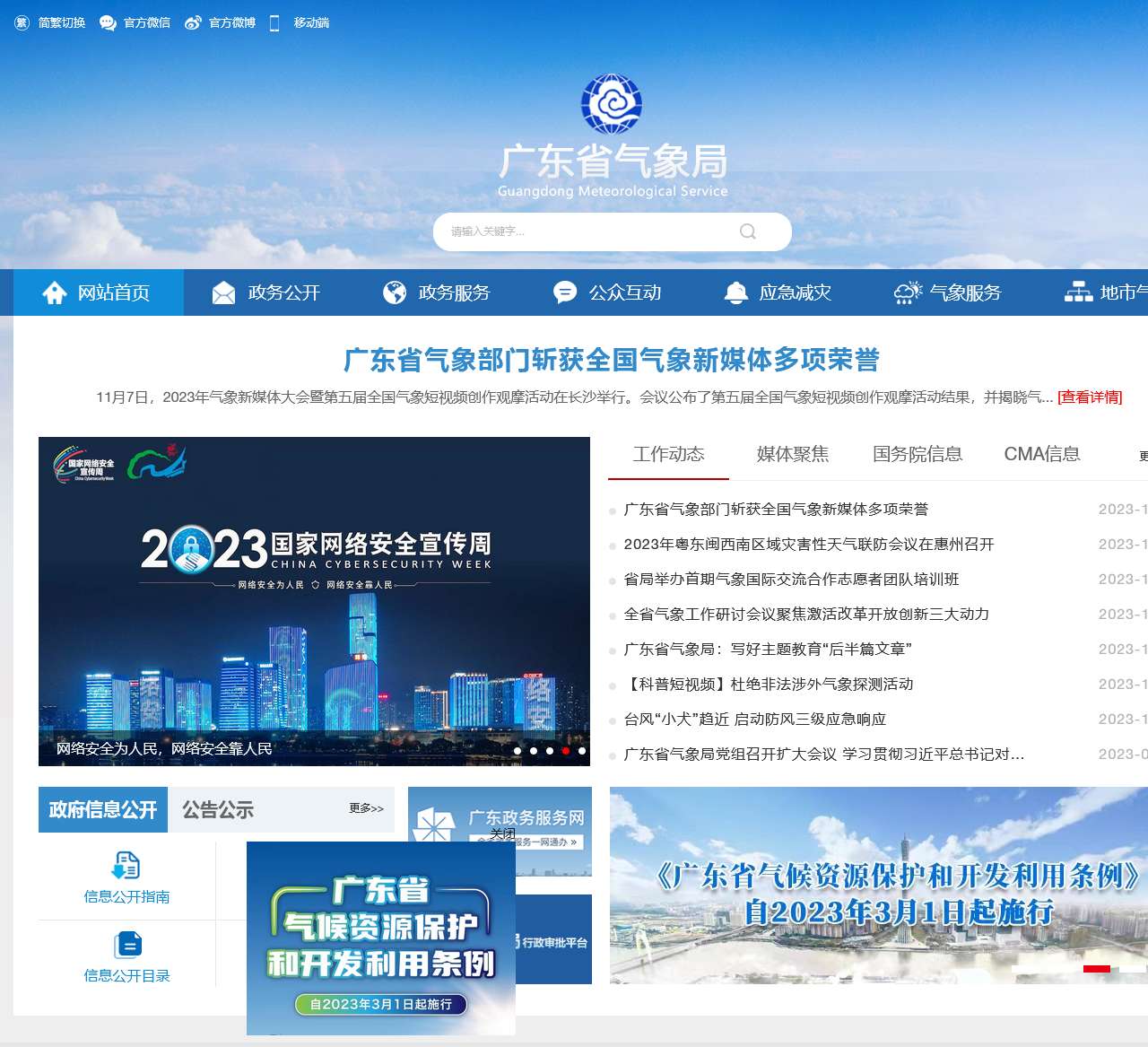 欢迎访问广东省气象局外网门户,我们致力于为广大市民提供准确、及时的气象信息,以确保您的生活和工作安全。广东省气象局是全国气象新媒体的佼佼者,多次荣获全国气象新媒体多项荣誉,为您提供权威、可信的气象服务。