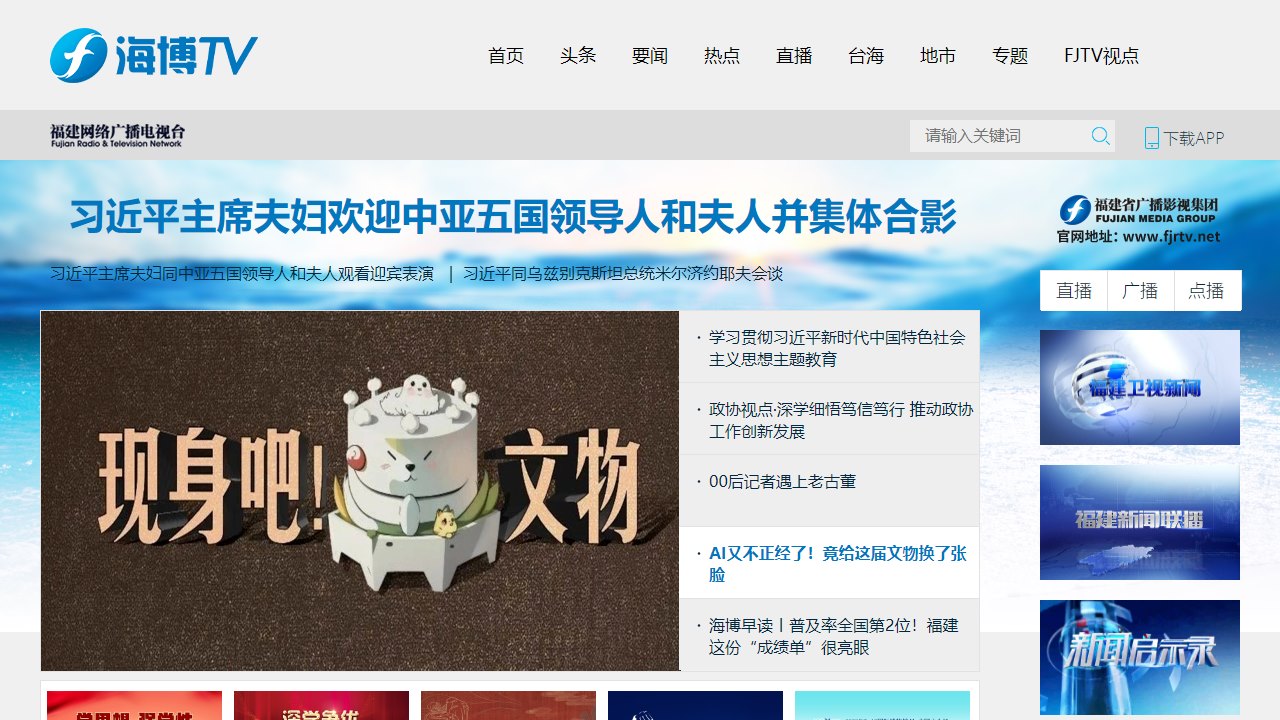 在福建省广播影视集团的网站首页,我们可以看到一些重大的信息和链接,如头条、要闻、热点、直播、台海、地市、专题、FJTV视点和下载APP等。这些板块提供了丰富的内容,让用户能够方便地获取到他们感兴趣的信息。