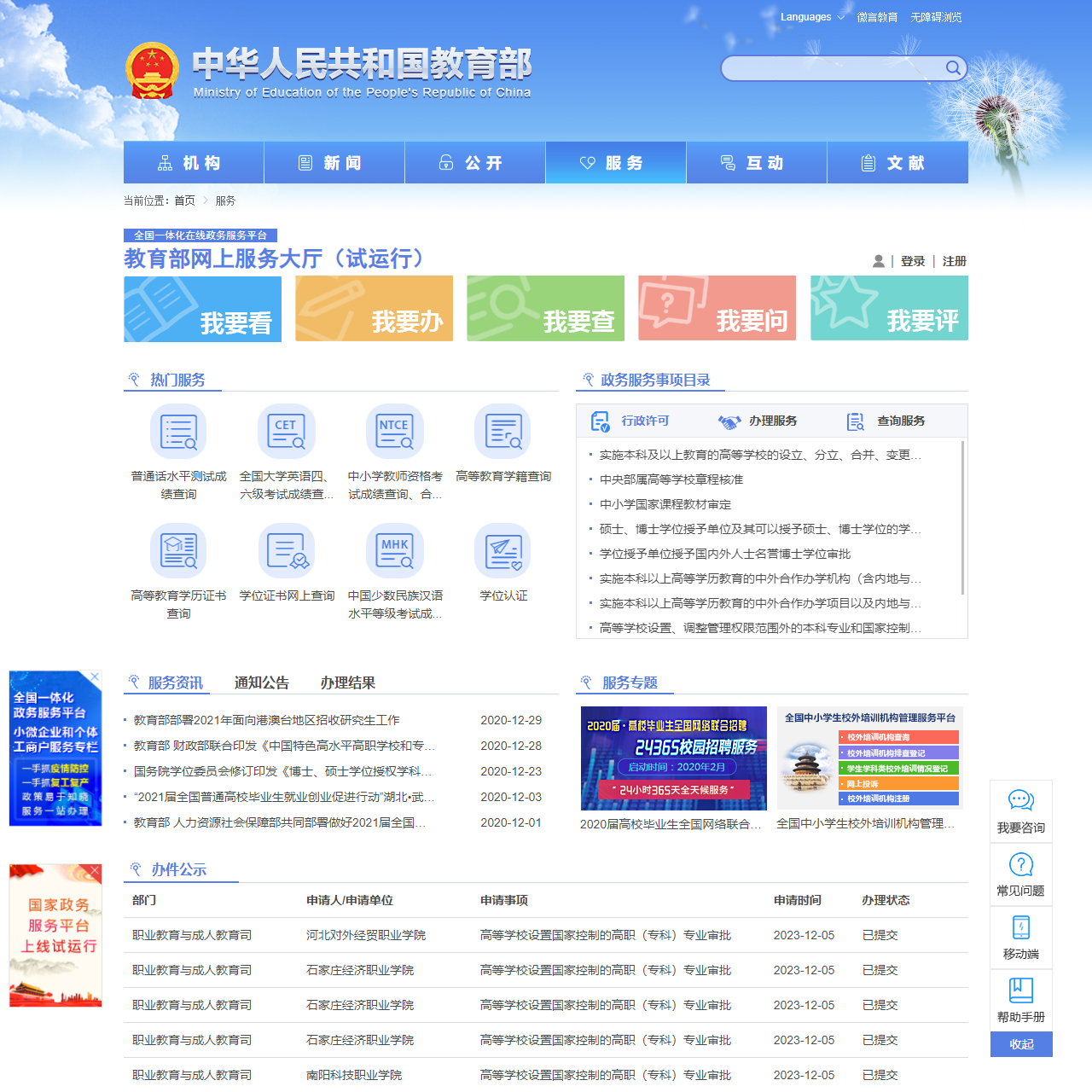 为学生、家长、教师、企业等提供与日常教育教学有关的服务事项,发布服务信息,提供名单查询。