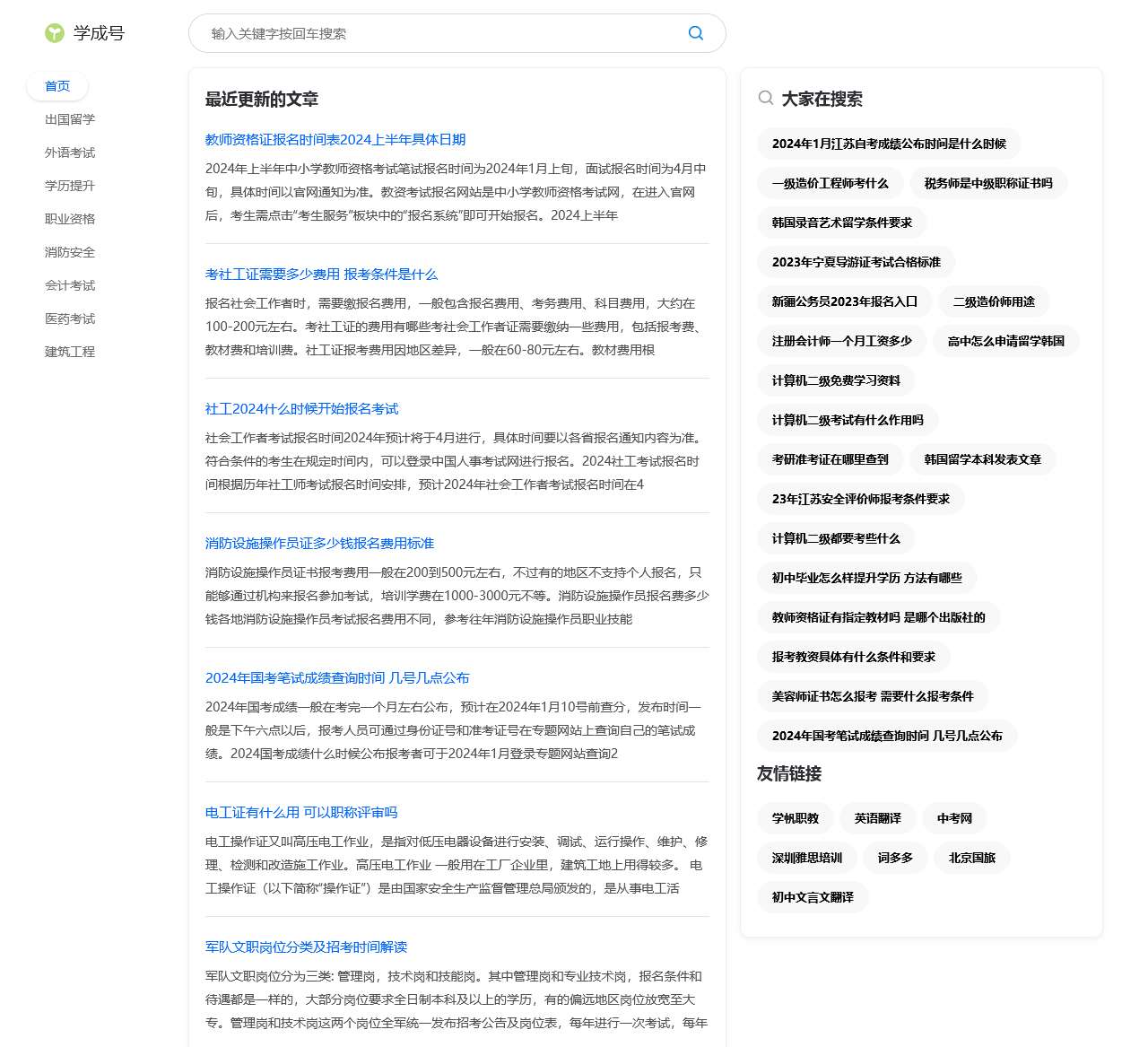 欢迎来到学成号,您的学习伙伴!在这里,我们致力于为您提供全方位的学习支持,涵盖出国留学、外语考试、学历提升、职业资格等多个领域。无论您是追求更高学历、提升职业资格,还是关注社工证、消防安全、医药考试等具体信息,学成号都是您值得信赖的学习助手。
