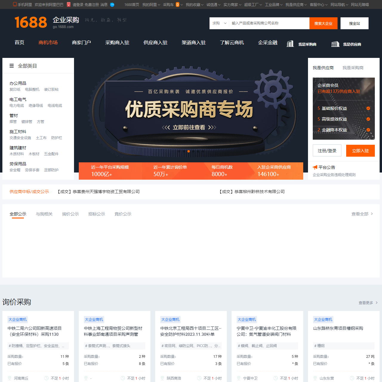阿里巴巴1688大企业采购平台-名企商机市场,赋能平台采购商和供应商!帮助提升互联网采购能力!