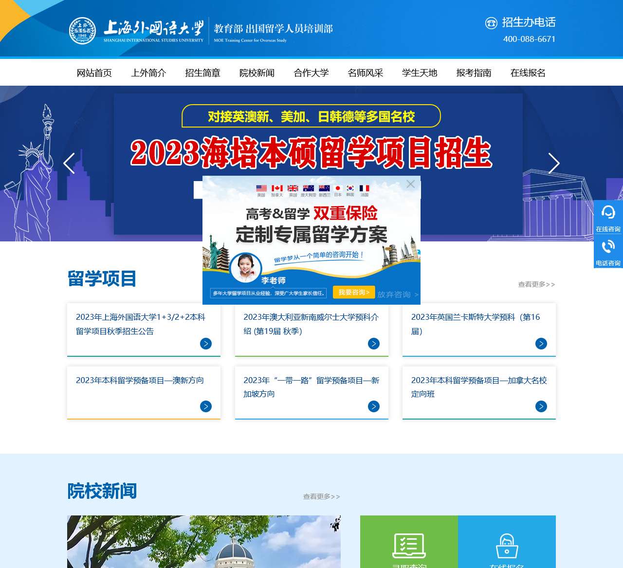 欢迎访问上海外国语大学留学官网,我们致力于提供一流的1+3/2+2本科留学项目,为广大学子提供优质的留学服务。通过我们的官网,您可以了解到有关上外留学项目的详细信息,包括招生简章、院校新闻、合作大学、名师风采、学生天地、报考指南等内容。
