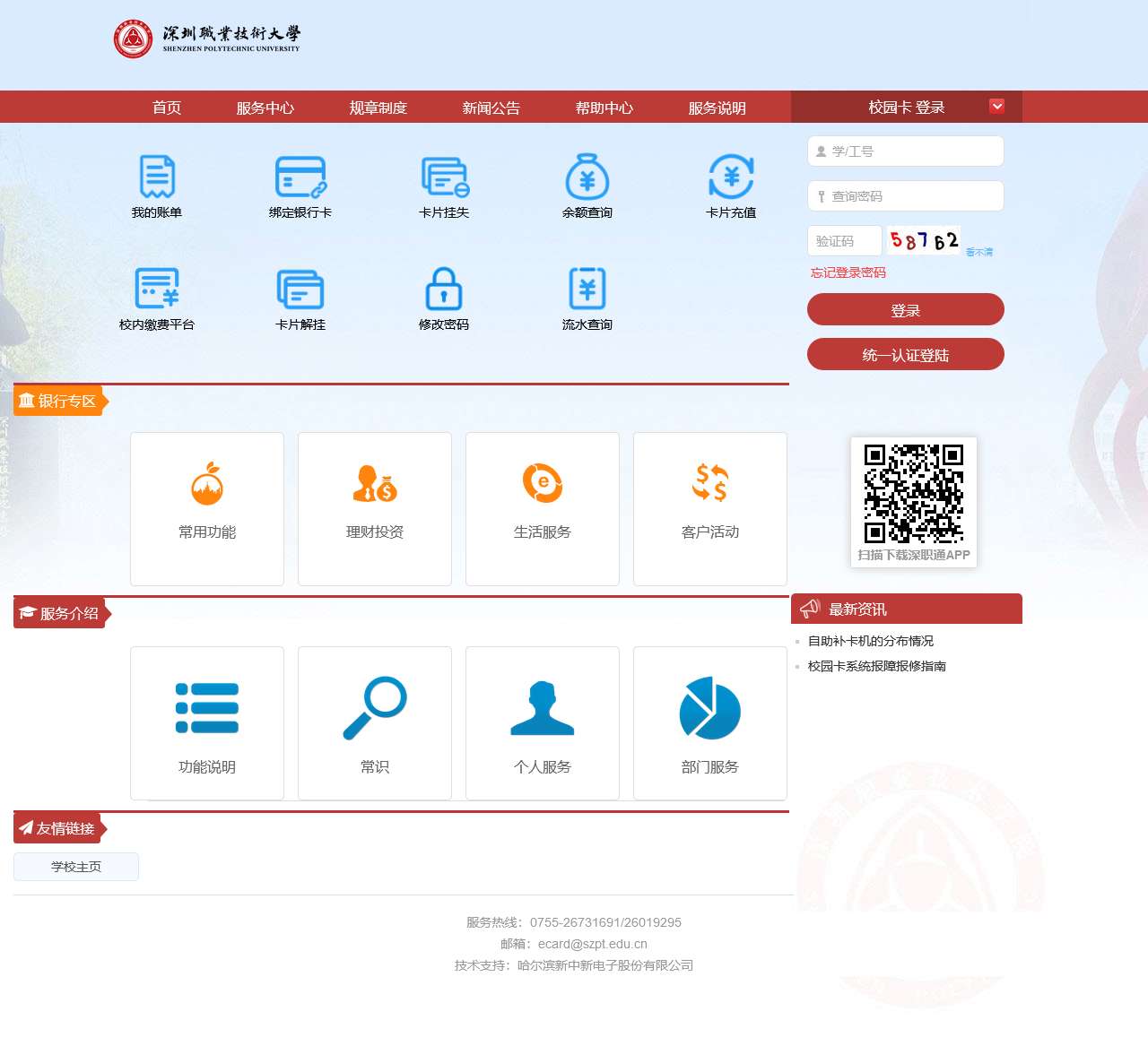 | 服务说明 | 服务网点地图 | 自助设备 | 校园卡 | 登录 |