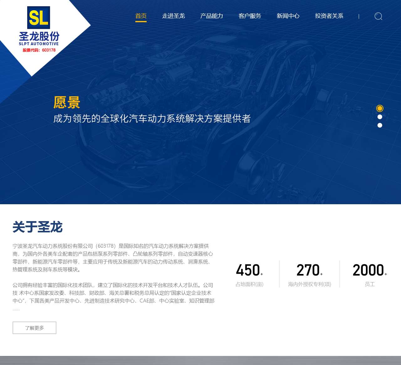 欢迎访问圣龙股份官方网站。我们是一家专注于汽车动力系统的企业,致力于提供高质量的产品和优质的用户服务。以下是我们网站的主要导航标签,方便您快速了解我们的业务。