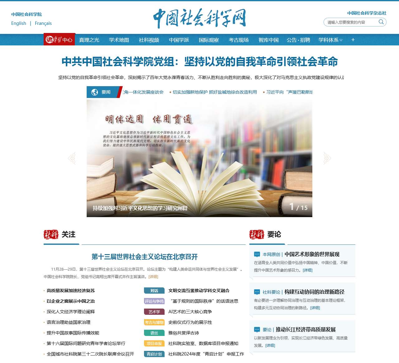 中国社会科学网是中国社会科学院旗下的官方网站,致力于繁荣中国学术、发展中国理论,以及传播中国思想。网站首页提供了丰富的内容和资源,涵盖了多个学科领域,为广大学者和社会大众提供了丰富的学术信息和知识。