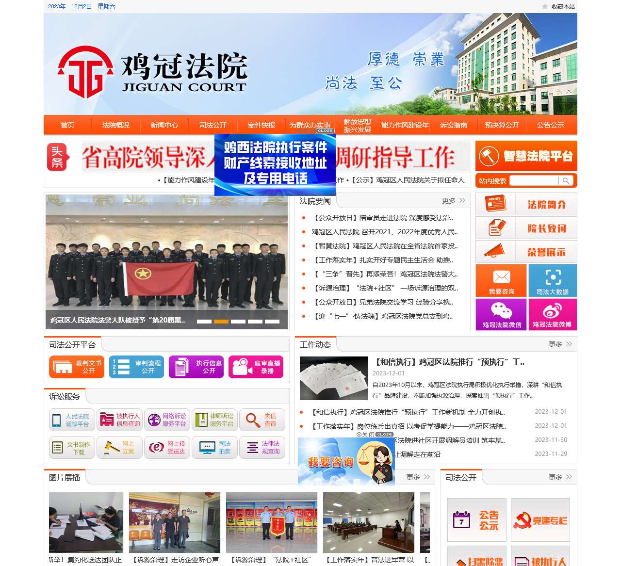 欢迎访问鸡冠区人民法院官方网站,为您提供全面、及时的法院概况、新闻中心、司法公开等服务。在这里,我们致力于为广大群众办实事,解放思想,振兴发展,打造法治环境。