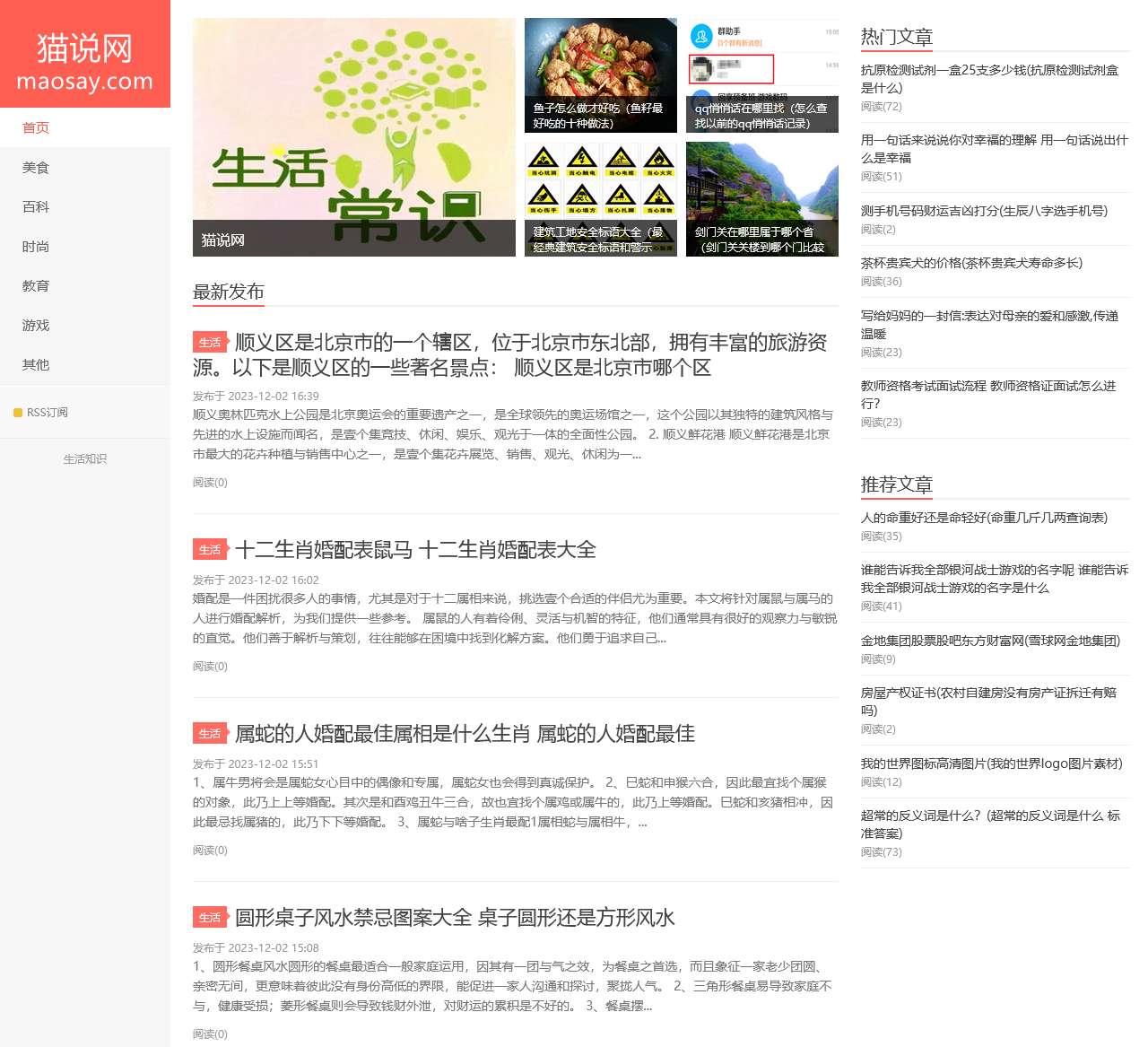 猫说网是一个专注于生活知识的综合平台,涵盖美食、百科、时尚、教育、游戏等多个领域,为用户提供丰富的信息和实用的知识。以下是猫说网首页的主要分类及相关内容: