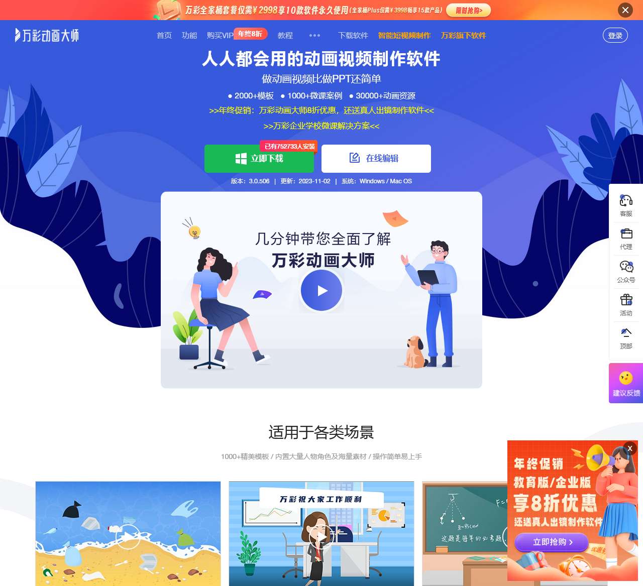 - 年终促销: 万彩动画大师8折优惠,还送真人出镜制作软件