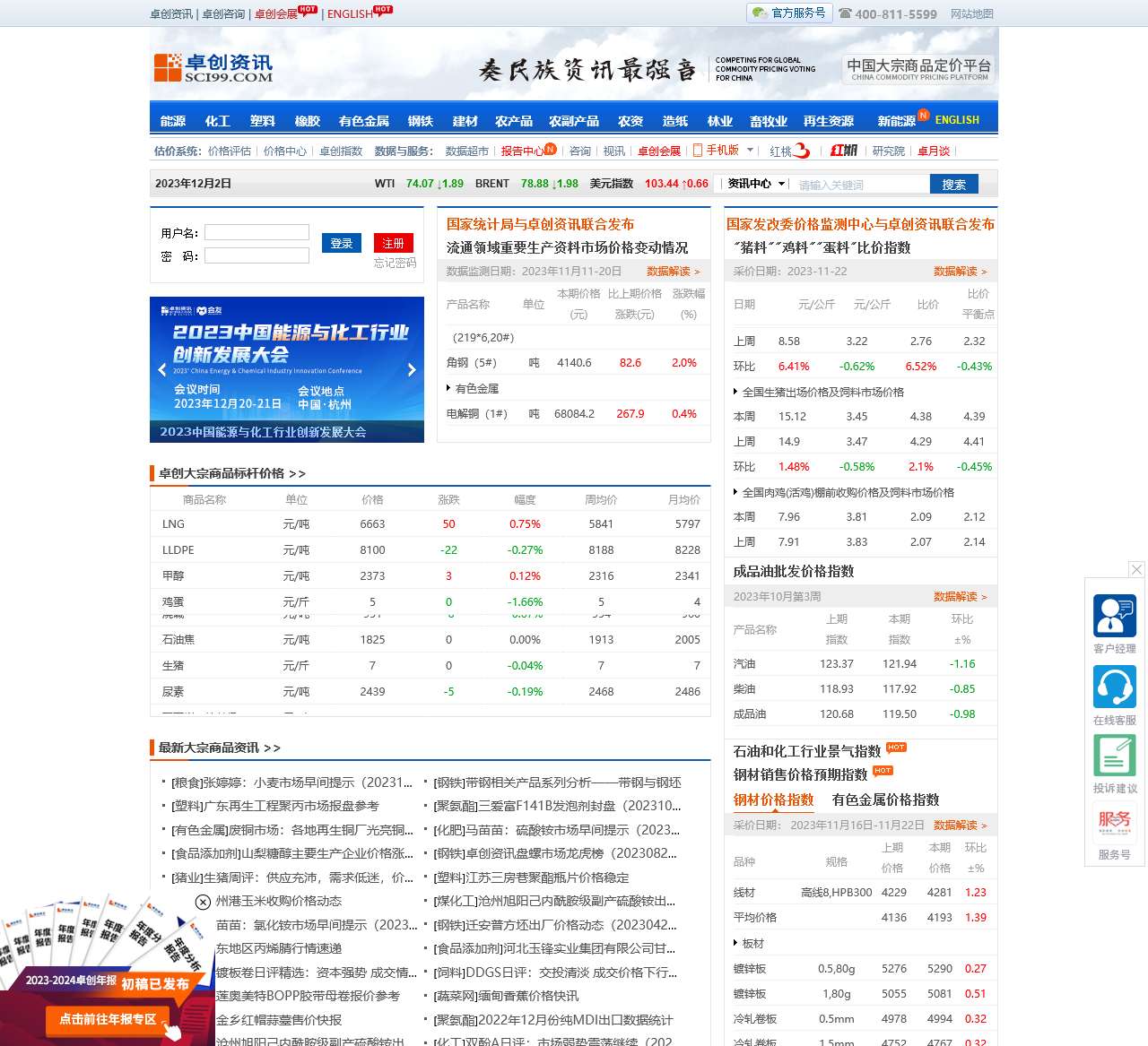 欢迎访问卓创资讯,您信赖的大宗商品市场专家。我们专注于能源、化工、塑料、橡胶、有色金属、钢铁、建材、农产品、农副产品、农资、造纸、林业、畜牧业、再生资源、新能源等领域的信息整合与服务。通过我们的网站,您可以获取最新的大宗商品价格、行业动态以及专业的市场分析。