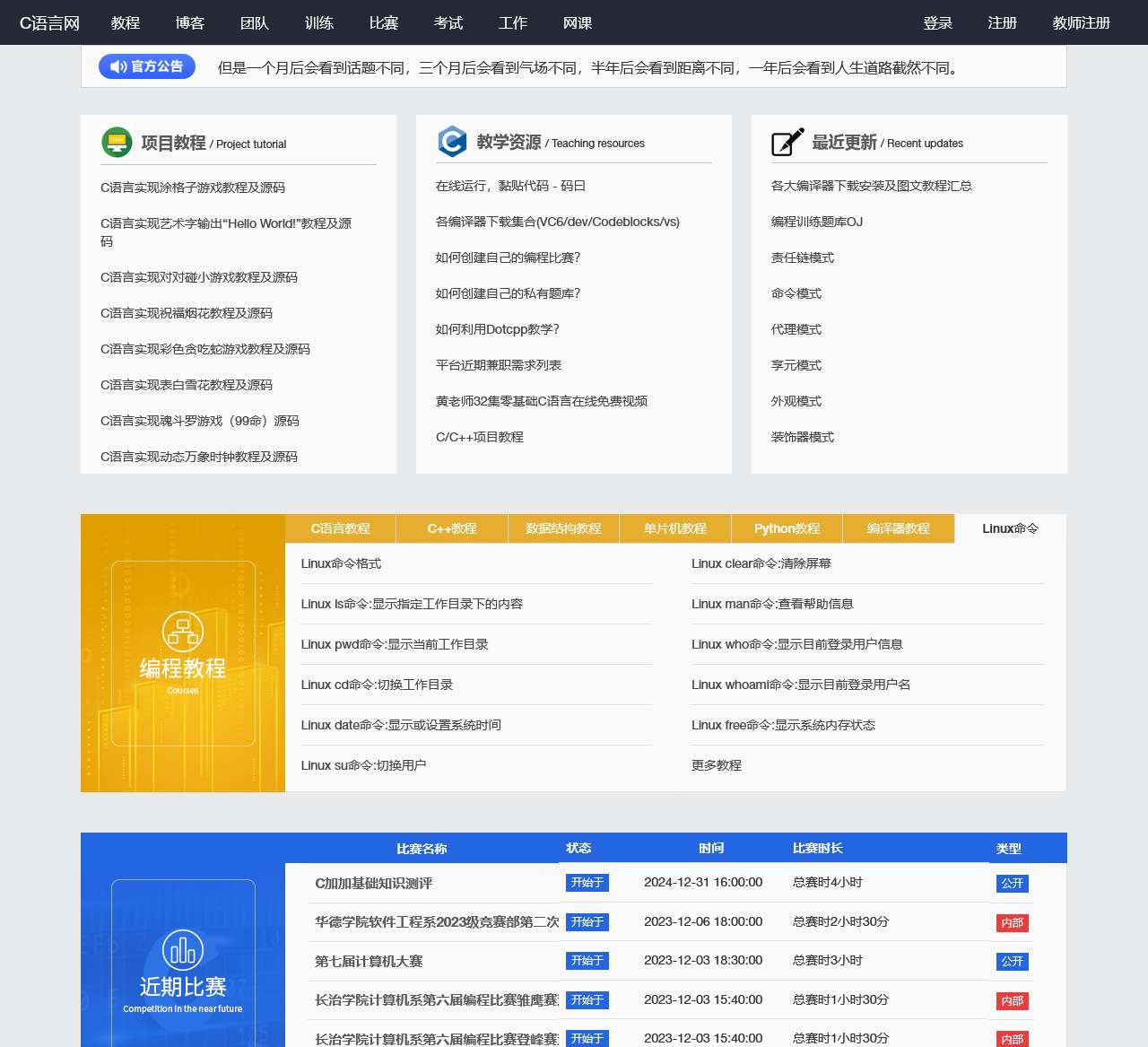 C语言网(Dotcpp编程),老牌的编程入门学习平台,不仅仅提供C语言、C++、Java、Python、编译器(编程软件)等技术的教程资源和工具,还提供包括计算机二级、蓝桥杯真题在内的编程题库,让初学者学练同步,真正学会编程!
