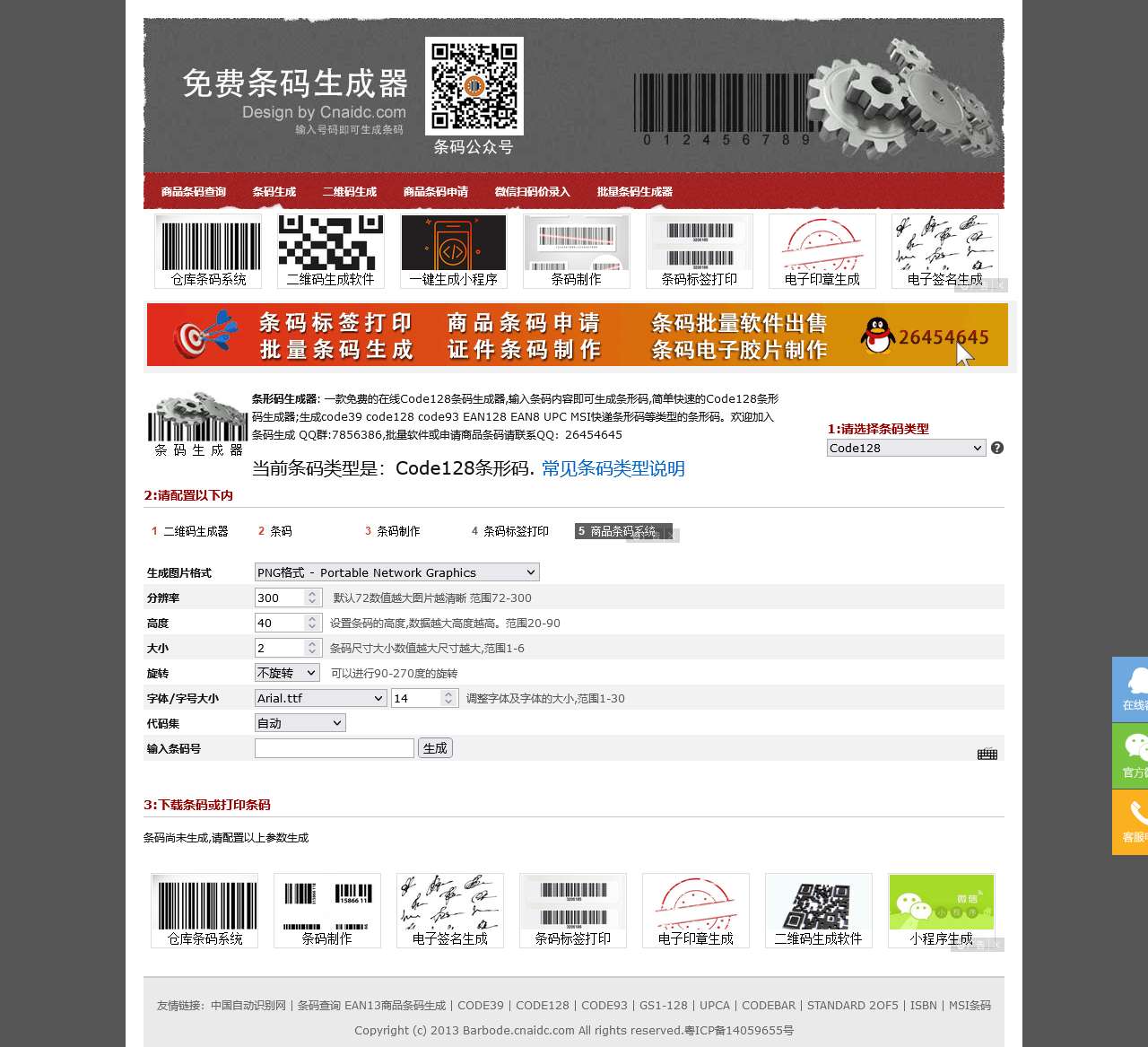 条形码生成器是一款免费在线条码生成器,输入条形码号即可制作条形码,EAN13商品条码制作,code39条码,code128,UPC条码生成,GS1128,快递条形码等各种条码生成.