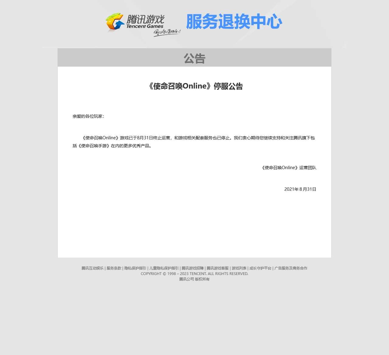 关于使命召唤Online – 服务退换中心 – 腾讯游戏特别声明